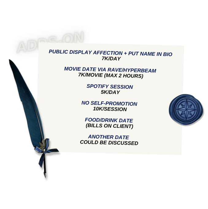 Additional services: (Please state additional service details desired. Ex: movie date 2 sessions on the weekend/Spotify session before bedtime/etc)